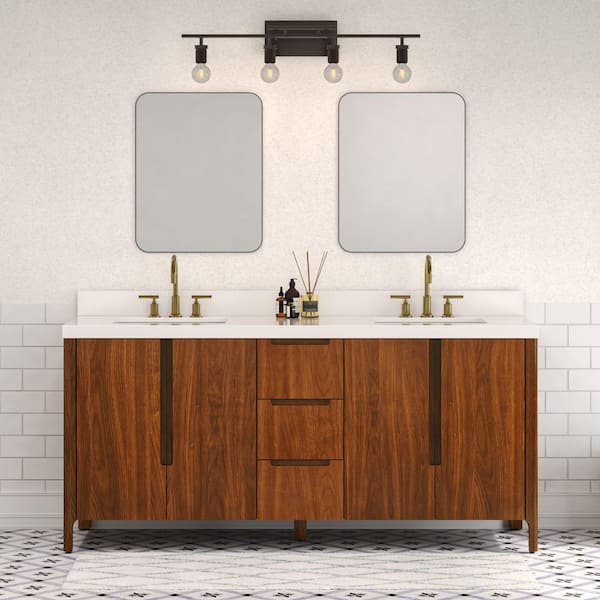 Sequoia 72 In. W x 22 in. D x 34.4 in. H Double Sink Bath Vanity in Noir Juglans with White Quartz Top and Gold Faucet