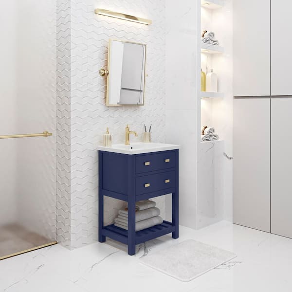 VIOLA 24 in. W Bath Vanity in Monarch Blue Finish with Ceramics Integrated Vanity Top with White Basin