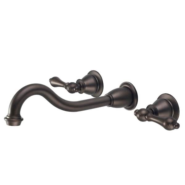 Wall Mount 2-Handle Elegant Spout Bathroom Faucet in Oil Rubbed Bronze