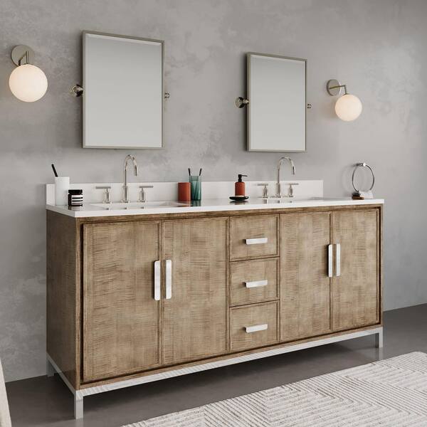 Westin 72 in.W x 22 in.D x 34.4 in.H Double Sink Bath Vanity in Lustrous Walnut with Whitebrook Quartz Top and Mirrors