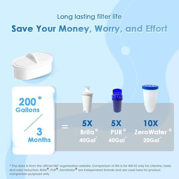 Water Filter Pitcher with 1 Filter, 5X Times Lifetime, Lasts 200 gal., Reduces PFOA/PFOS, 7-Cup Capacity, Elfin,White