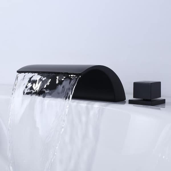 Waterfall 2-Handle Deck Mounted Roman Tub Faucet 3 Hole, Bathtub Shower Faucet with Dual Handle in. Matte Black