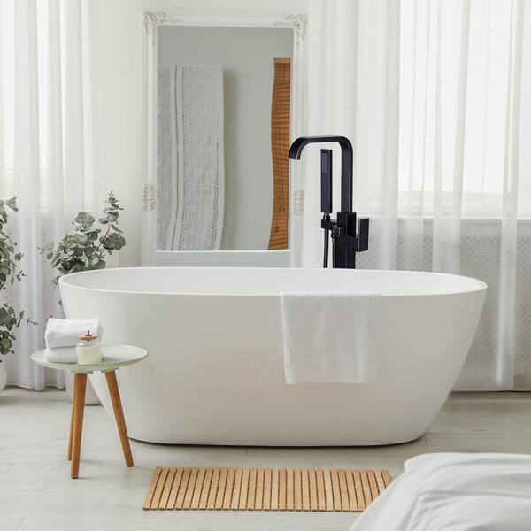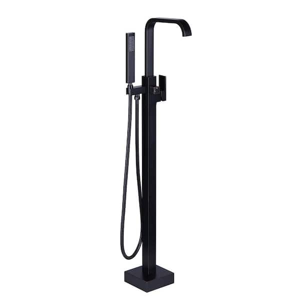 Waterfall Single-Handle Freestanding Tub Faucet with Hand Shower, Brass Floor Mounted Tub Faucet in Oil Rubbed Bronze