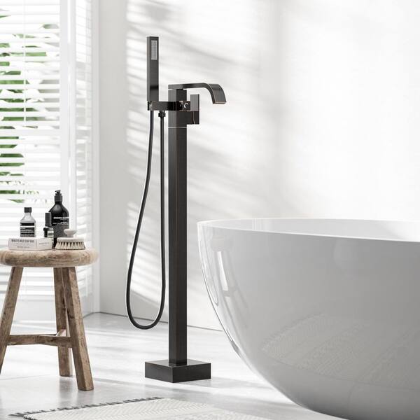 Waterfall Single-Handle Freestanding Tub Faucet with Hand Shower, Floor Mounted Tub Filler Faucet in Oil Rubbed Bronze