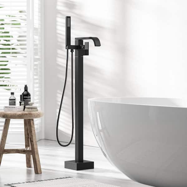 Waterfall Single-Handle Freestanding Tub Faucet with Handshower, Floor Mounted Tub Filler Faucet in. Matte Black