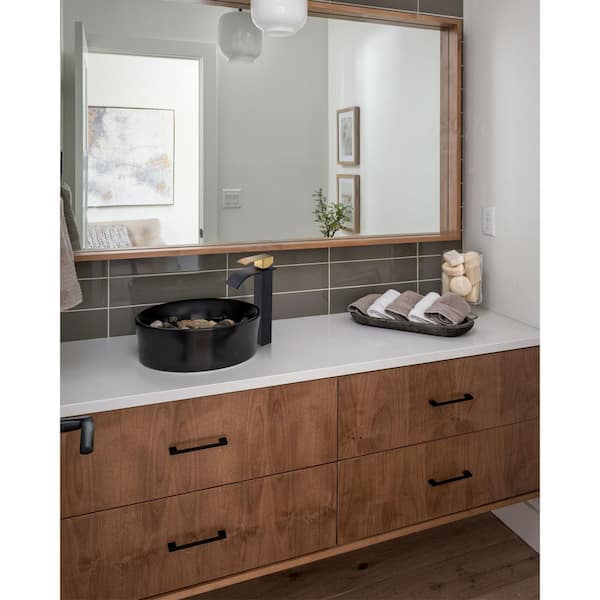 Waterfall Single Handle Single Hole Bathroom Faucet without Deckplate Included Pop Drain in Black and Gold