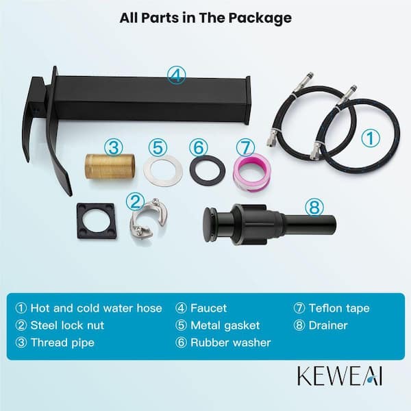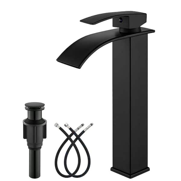 Waterfall Tall Bathroom Faucet Single Handle 1-Hole Stainless Steel Vessel Sink Faucet Pop Up Drain, Matte Black
