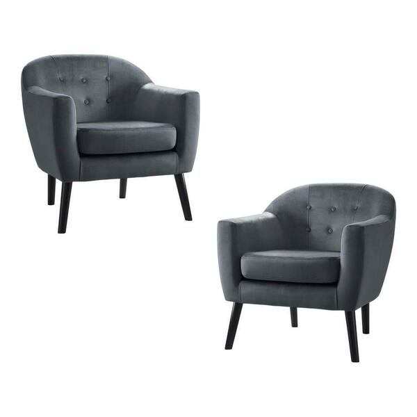 Waterlyn Gray Velvet Upholstery Tufted Back Accent Chair (Set of 2)
