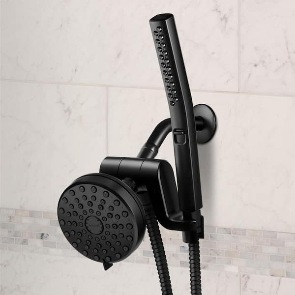 12-Spray High Pressure 1.8 GPM 5 in. Wall Mount Dual Shower Head and Handheld Shower Head in Matte Black