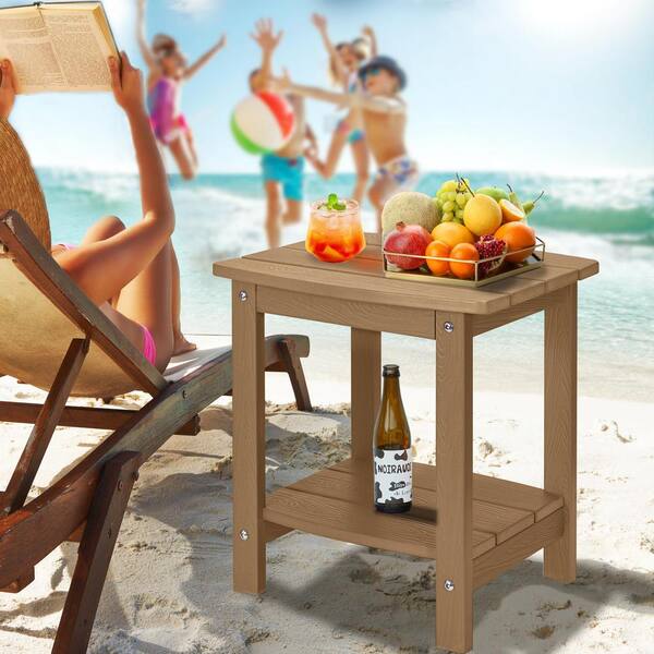 Waterproof Double Tier Brown Rectangle HIPS Plastic 16.7 in. Outdoor Side Table