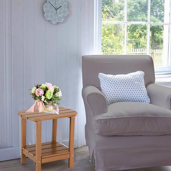 Waterproof Double Tier Teak Oval HDPE Plastic 18 in. Outdoor Side Table