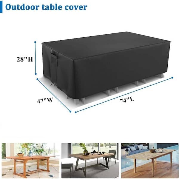 Waterproof Heavy-Duty 75 in. L x 48 in. W x 28 in. H Black Rectangular Outdoor Table and Chair Set Cover