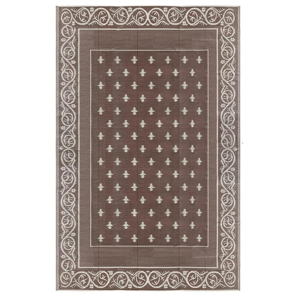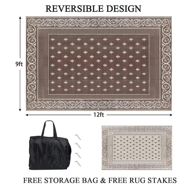 Waterproof Outdoor Rug 9 x 12, Reversible Plastic Straw Patio Camping Rug Bordered Brown