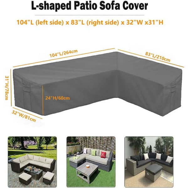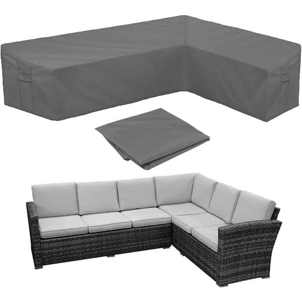 Waterproof Patio Furniture Cover-Windproof Right L-Shaped 420D Heavy Duty Sofa Cover, 110 in. L x 83 in. L, Gray