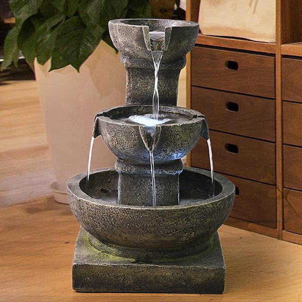 16. 4in Outdoor Waterfall Fountain-3-Tiered Relaxing Soothing Garden Fountains with LED Lights for Indoor Outdoo Decor