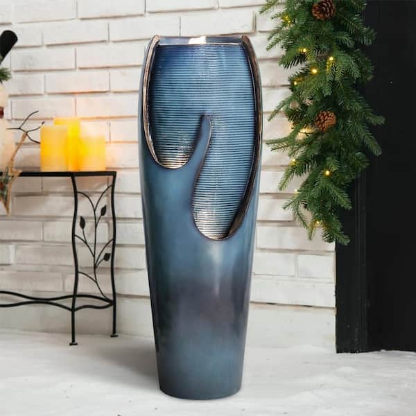 38.7in. Resin Outdoor Fountain and Waterfall -Indoor Water Jar Fountain Tall Floor with LED LightandPump for House Decor