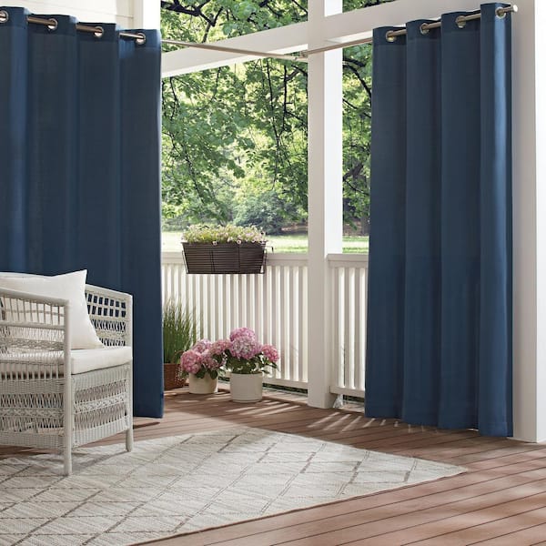 Hampton Blue Solid Polyester 52 in. W x 84 in. L Light Filtering Single Outdoor Grommet Panel