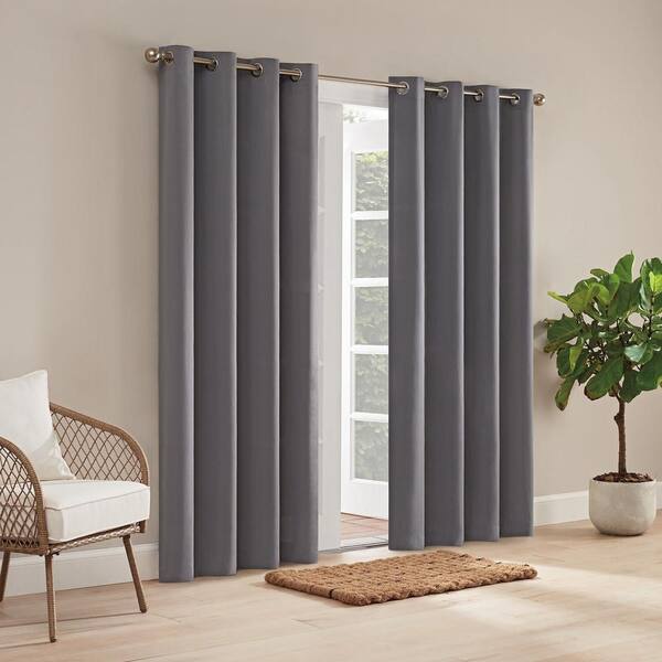 Hampton Charcoal Solid Polyester 52 in. W x 84 in. L Light Filtering Single Outdoor Grommet Panel