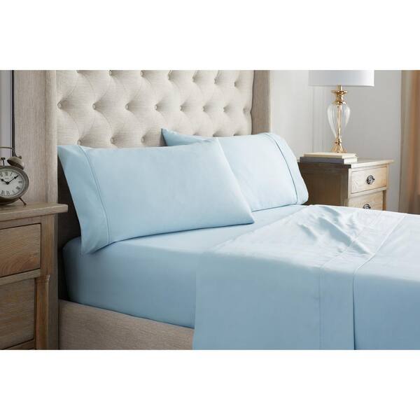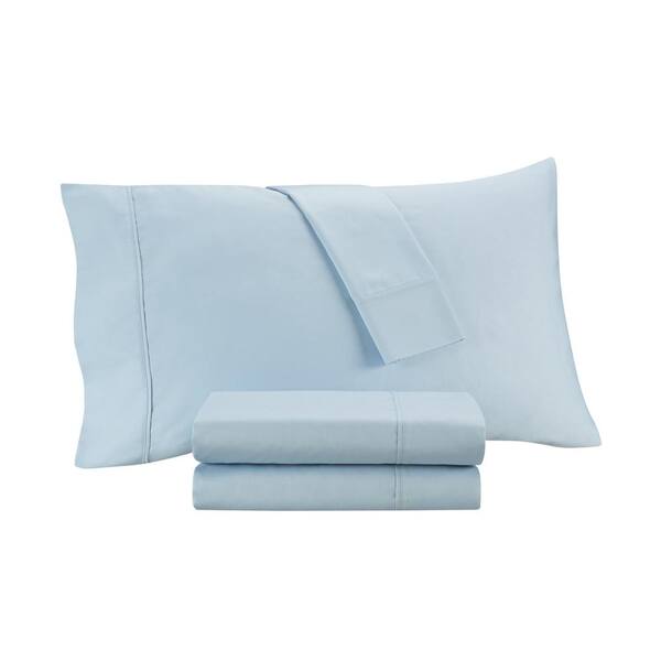 Sateen 4-Piece Pale Blue Solid Cotton King Sheet Set