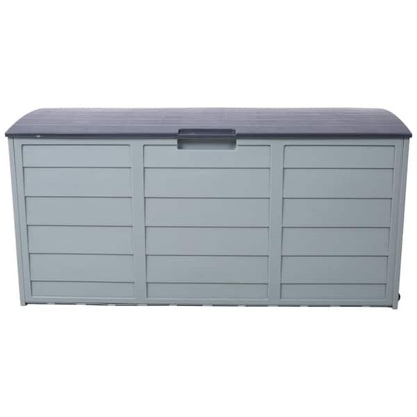 Weather-Resistant Gray 75 Gal. Plastic Deck Box with Convenient Side Handle, UV Patio Storage Shed Bin with Wheels