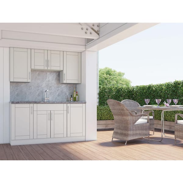 Sanibel Shoreline Gray 22-Piece 67.25 in. x 84 in. x 25 in. Outdoor Kitchen Cabinet Island Set
