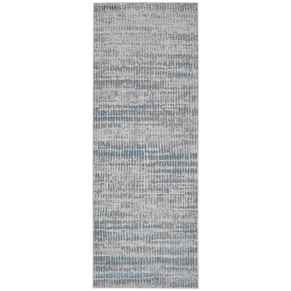 Aurelian Teal/Gray 3 ft. x 8 ft. Distressed Polyester Runner Rug