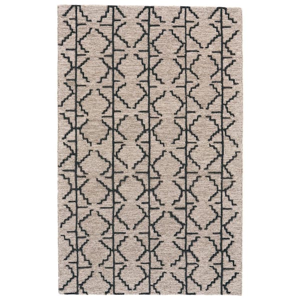 Fadden Taupe/Black 4 ft. X 6 ft. Geometric Wool Area Rug