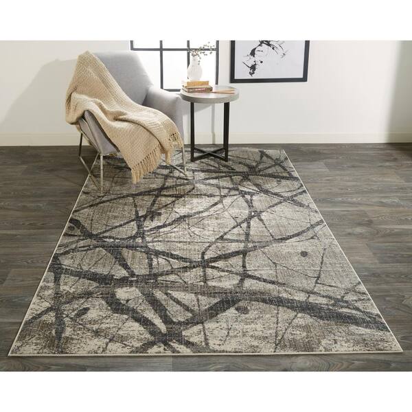 Kiba Warm Gray/Charcoal 2 ft. x 3 ft. Abstract Polyester Area Rug