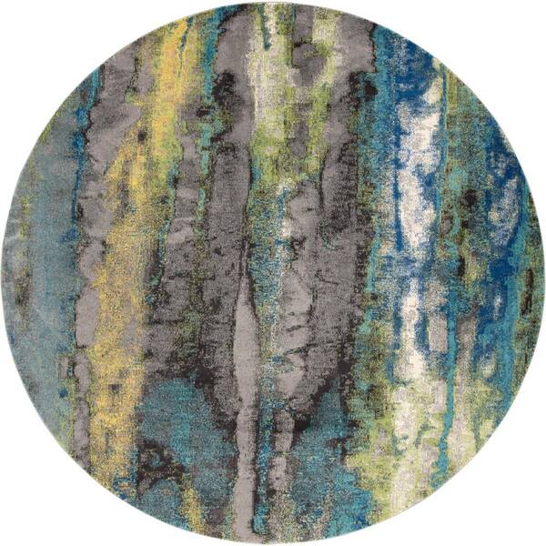 Omari Teal Blue/Green 8 ft. Round Abstract Polypropylene Area Rug