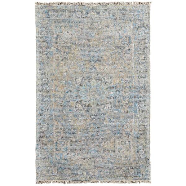 Ramey Blue/Light Gray 9 ft. x 12 ft. Oriental Wool Area Rug