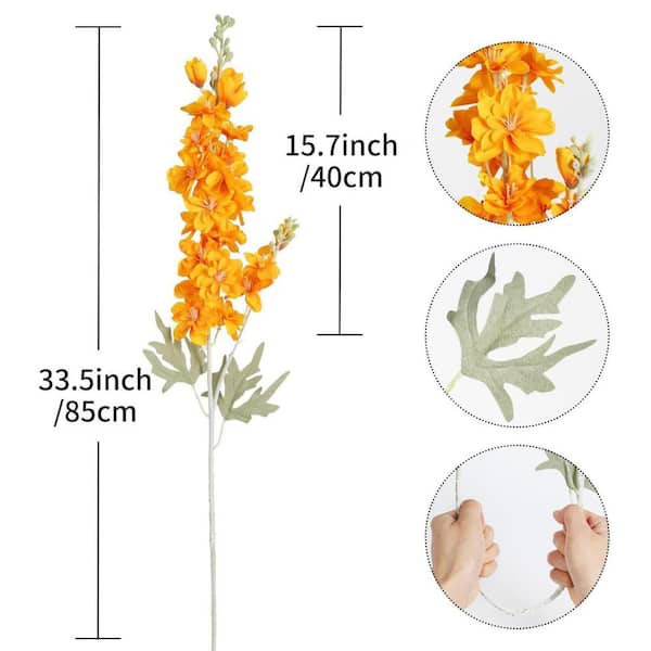 Wedding Bouquet Series 8-Pices, 33.5 in. H x 3.15 in. W Orange Artificial Delphinium