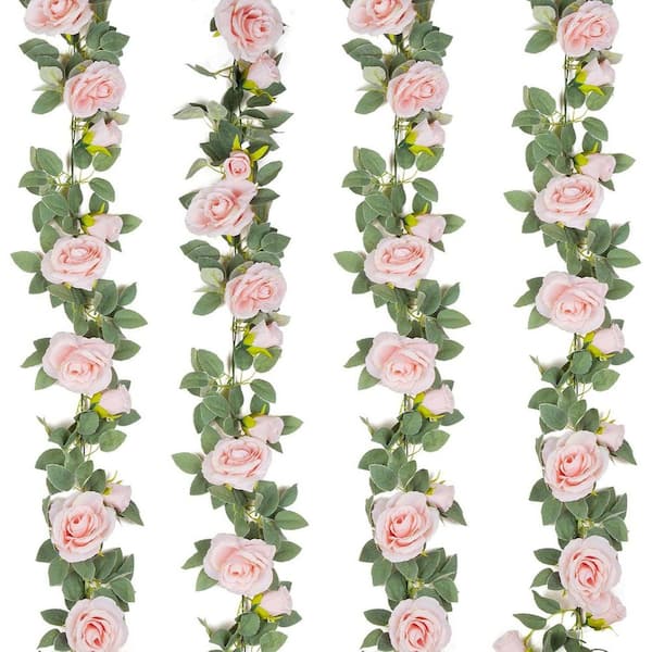 Wedding Series:4Pcs(6.5 FT) Pink Artificial Rose Vine Fake Flower Garland