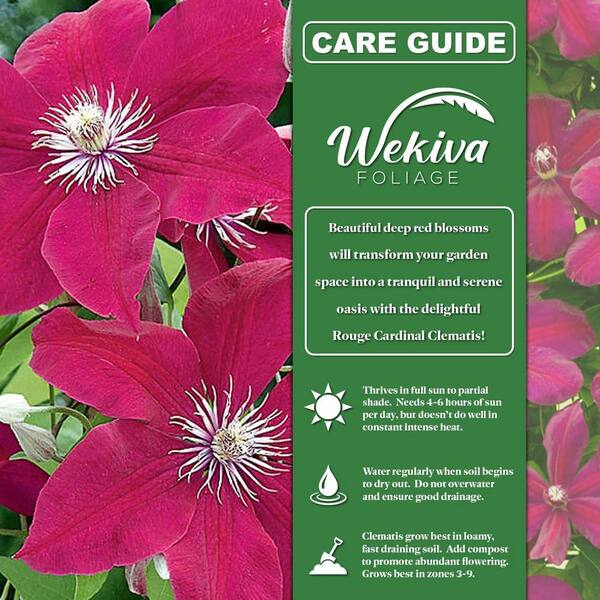 Clematis Rouge Cardinal 2-Live Starter Plants in 2 in. Growers Pots-Starter Plants-Rare Clematis