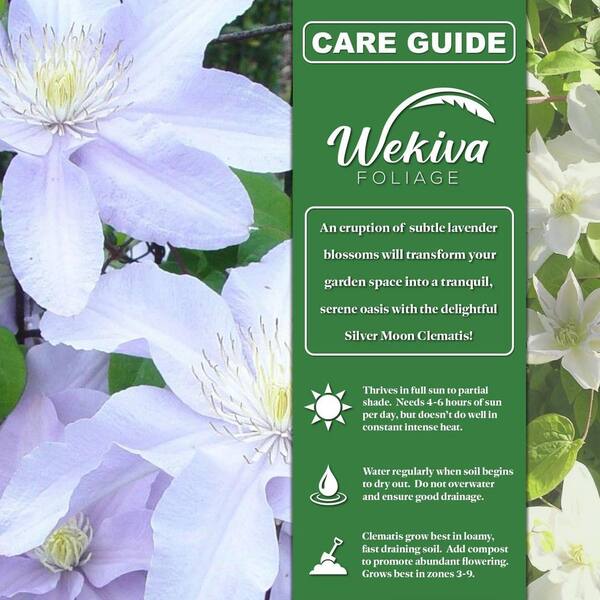Clematis Silver Moon-4 Live Plants in 3.5 in. Growers Pots-Beautiful Starter Flowering Vine Ready for The Garden