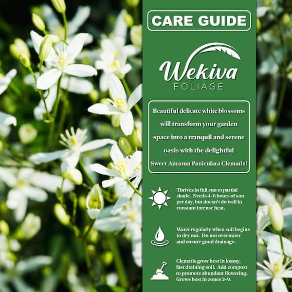 Clematis Sweet Autumn Paniculata-3 Live Plants in 3.5 Inch Growers Pot-Beautiful Flowering Vine Ready for the Garden