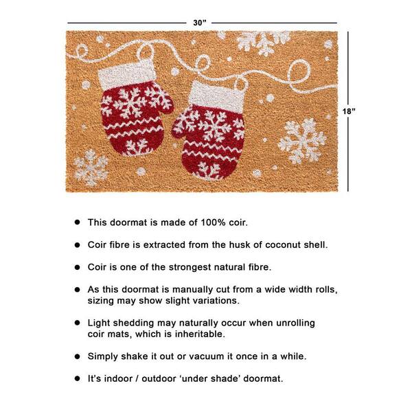 Welcome Mittens White 18 in. x 30 in. Coir Non-Slip Outdoor Door Mat