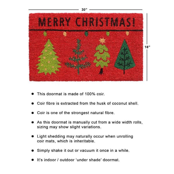 Welcome Tree Merry Christmas Red 18 in. x 30 in. Coir Non-Slip Outdoor Door Mat