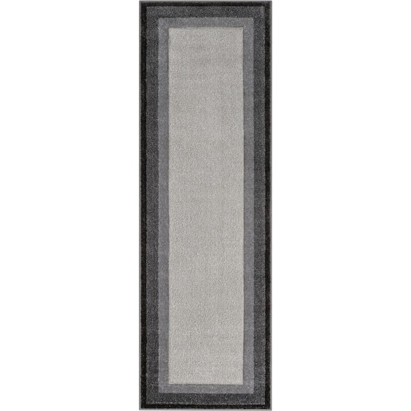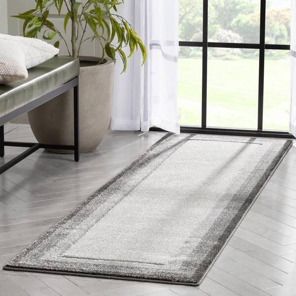 Astrid Arian Modern Border Grey 2 ft. 3 in. x 7 ft. 3 in. Runner Area Rug