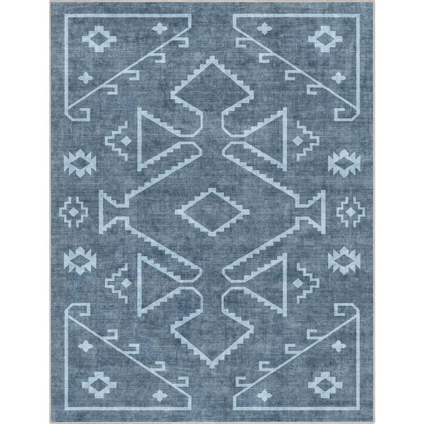 Blue 7 ft. 7 in. x 9 ft. 10 in. Apollo Bottineau Distressed Southwestern Area Rug