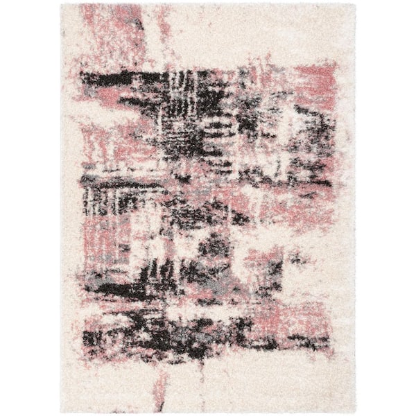 Canyon Sariah Modern Abstract Hand-Carved Shag Ivory Blush 5 ft. 3 in. x 7 ft. 3 in. Area Rug