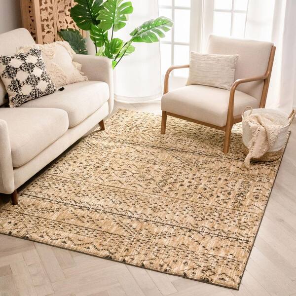 Delilah Beverly Modern Vintage Moroccan Tribal Distressed Beige 5 ft. 3 in. x 7 ft. 3 in. Area Rug