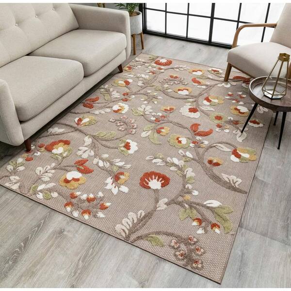 Dorado Neveh Modern Floral Beige Hight-Low Indoor/Outdoor 5 ft. 3 in. x 7 ft. 3 in. Area Rug