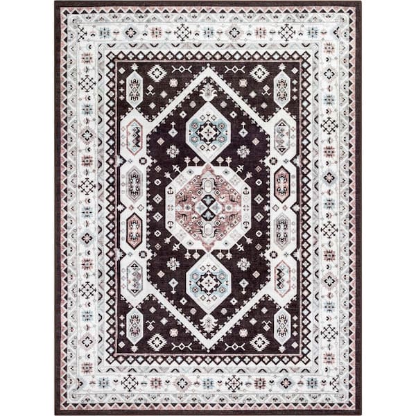 Kings Court Kama Tribal Medallion Washable, Black 5 ft. x 7 ft. Area Rug
