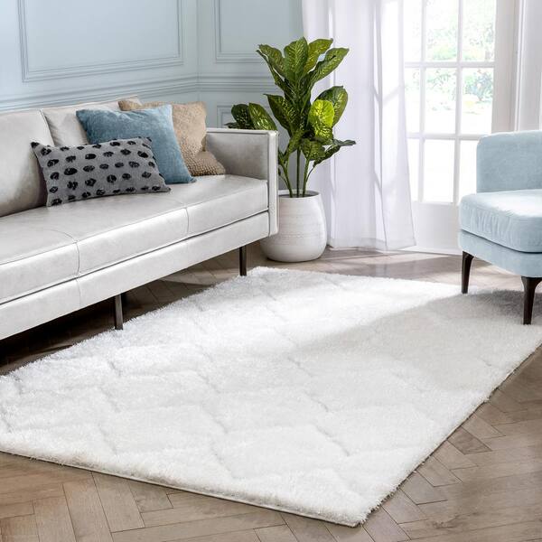 Logan Sandy Lattice Trellis Shag Ivory 5 ft. x 7 ft. 3 in. 3D Textured Area Rug