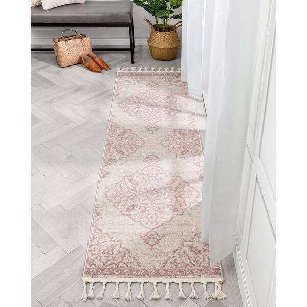 Loop-De-Loop Mara Blush 2 ft. 3 in. x 7 ft. 3 in. Runner Medallion Botanical Area Rug