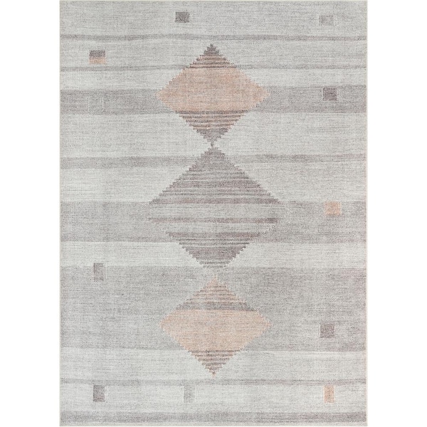 Lotus Argonne Grey Vintage Southwestern Diamond 7 ft. 10 in. x 9 ft. 10 in. Machine Washable Area Rug