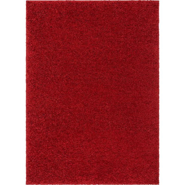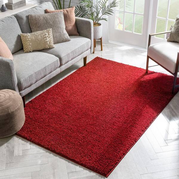 Madison Shag Plain Red 3 ft. x 5 ft. Modern Solid Area Rug