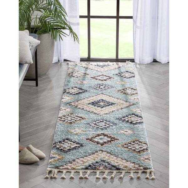 Nala Sedna Moroccan Shag Light Blue 2 ft. 3 in. x 7 ft. 3 in. Runner Area Rug