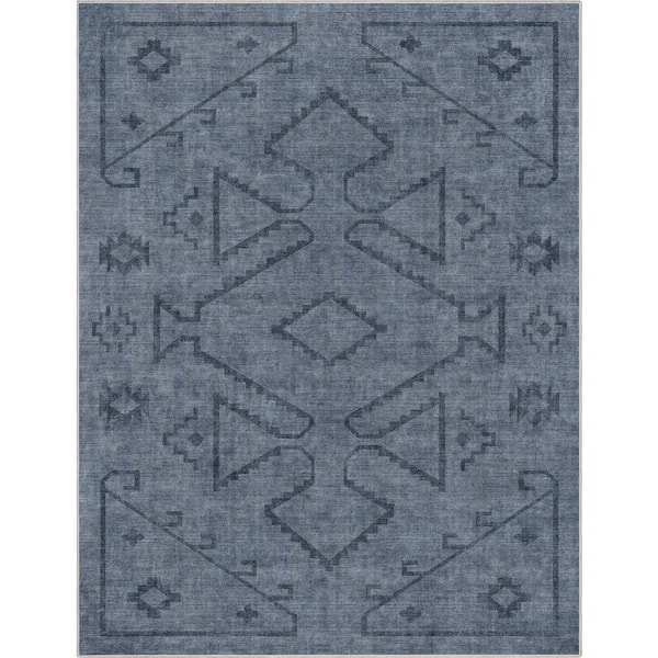 Navy Blue 7 ft. 7 in. x 9 ft. 10 in. Apollo Bottineau Distressed Southwestern Area Rug