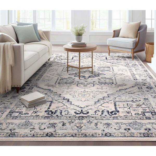 Omaha Camilla Farmhouse, Oriental, Distressed, Ivory Blue 9 ft. 3 in. x 12 ft. 6 in., Area Rug